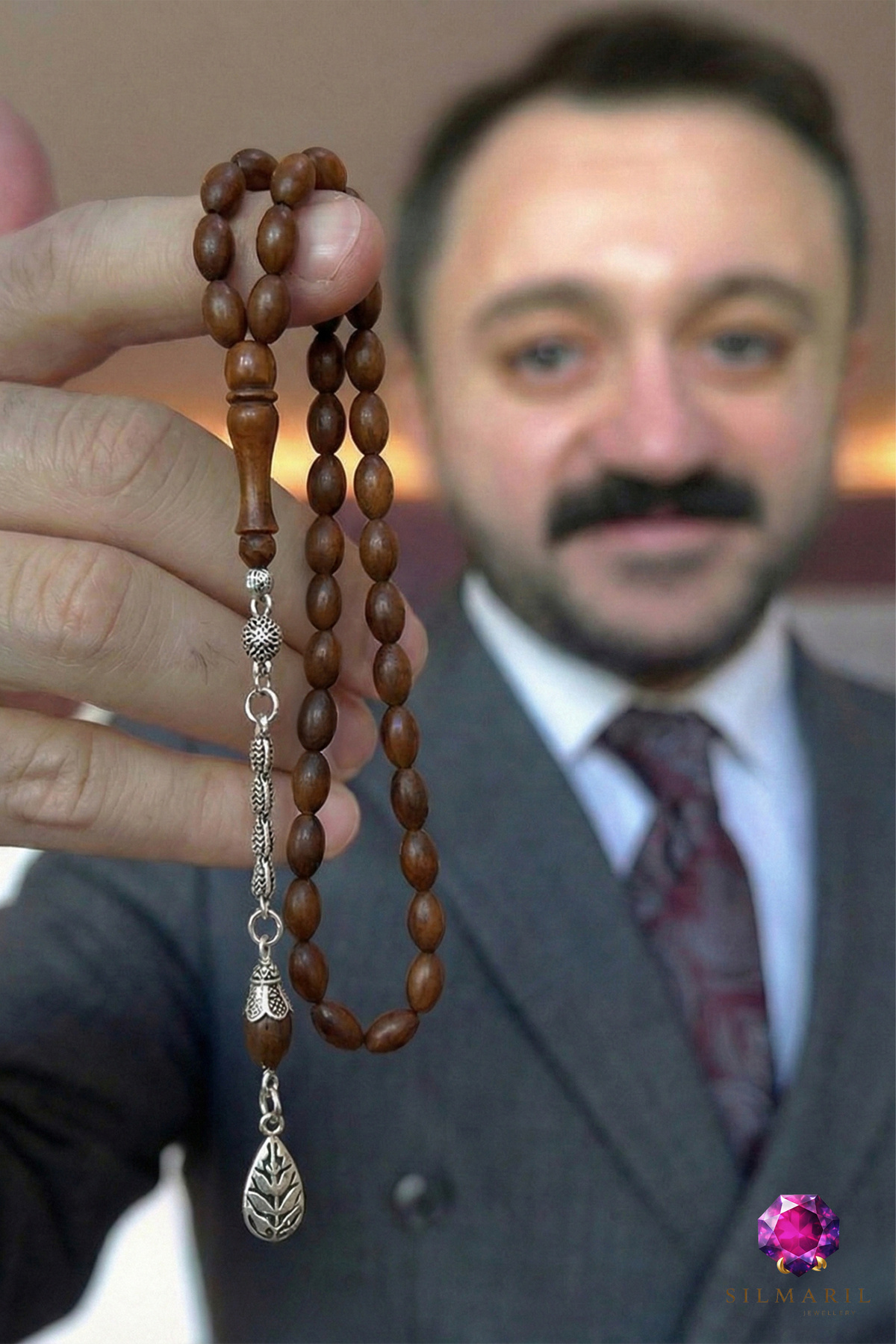 925 Ayar Gümüş Püsküllü Doğal Kuka Meyvesinden Üretilen Kuka Tespih - Erkek Hediyelik