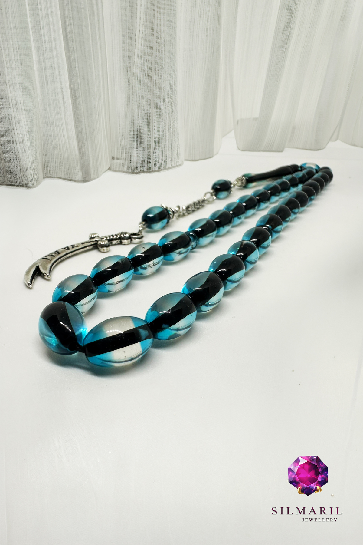Premium Görünüm ve Ustalık İşçilik Cam gibi parlak ve şeffaf parlak yapısıyla yüksek parlaklık sunan bu lüks tesbih, nadir ton ve doygun renk arayanlar için degrade çift renk tasarımıyla öne çıkıyor. Pürüzsüz yüzey ve parlak yüzey kalitesi, net işçilik ve ustalık işçilik ile birleşerek kusursuz bir premium görünüm sağlıyor. Sürmeli kehribar malzemeden özenle üretilen bu el yapımı tesbih, koleksiyonluk bir parçadır ve günlük kullanım için de son derece idealdir. Modelimiz; ateş kehribarı, damla kehribar, sıkma kehribar, faturan, bakelit, reçine, katalin, fiber tutkunlarının yanı sıra oltu, oltu taşı, kuka ve kuka ağacı severlerin de ilgisini çeken sınırlı üretim bir özel seri üründür. Zengin koleksiyon tesbih arayanlar için harika bir alternatiftir.