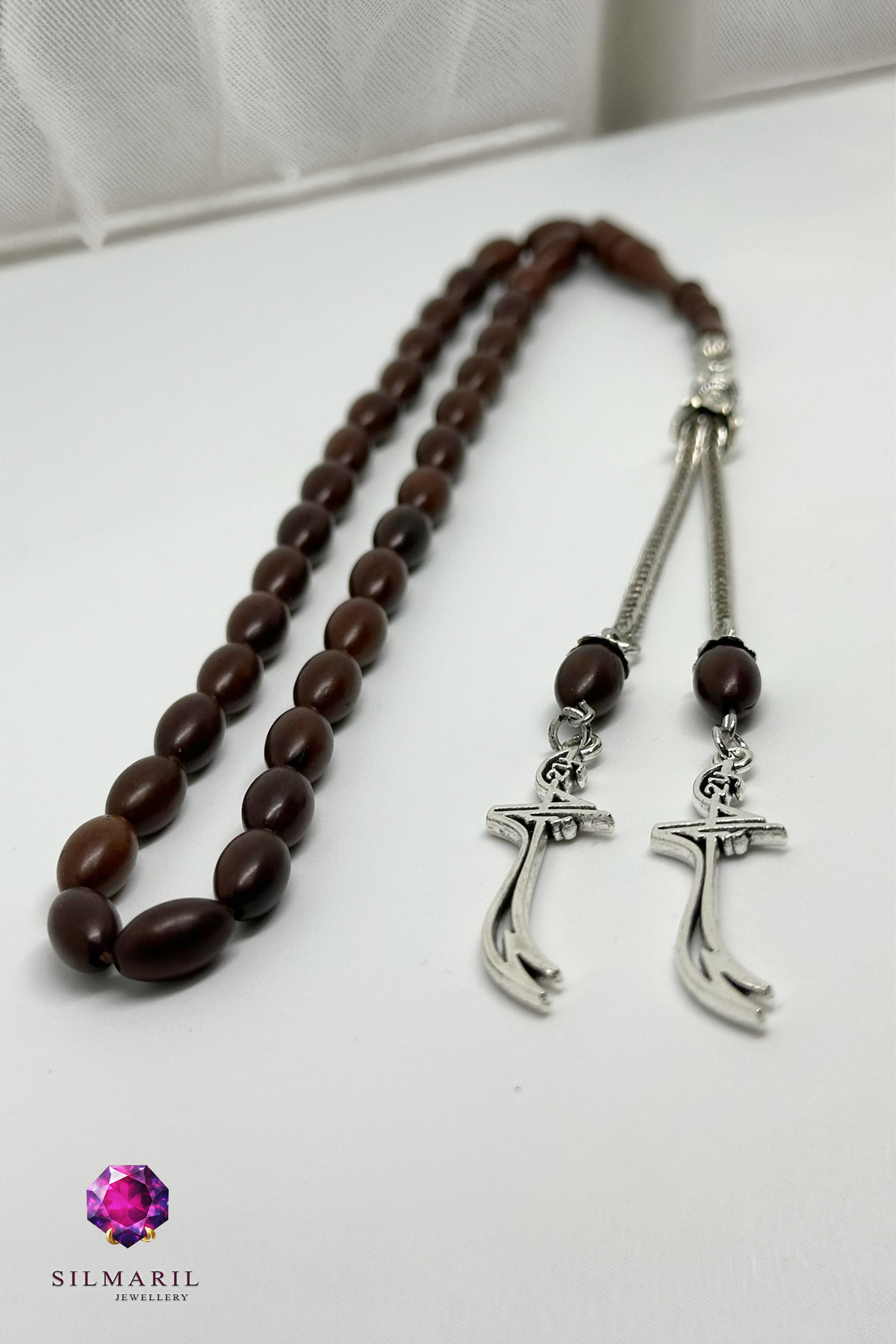 🤎 Silmaril Jewellery kalitesiyle hazırlanan bu kuka tesbih (kuka tespih); doğal kahverengi tonu, elde “tok” duruşu ve zamansız çizgisiyle erkek tesbih severlerin en çok tercih ettiği klasik formu modern detayla buluşturur. Günlük kullanımda elde rahat dolaşan yapısı, 33’lü / 33’lük tesbih arayanlar için hem şık hem pratik bir seçimdir. ✨
