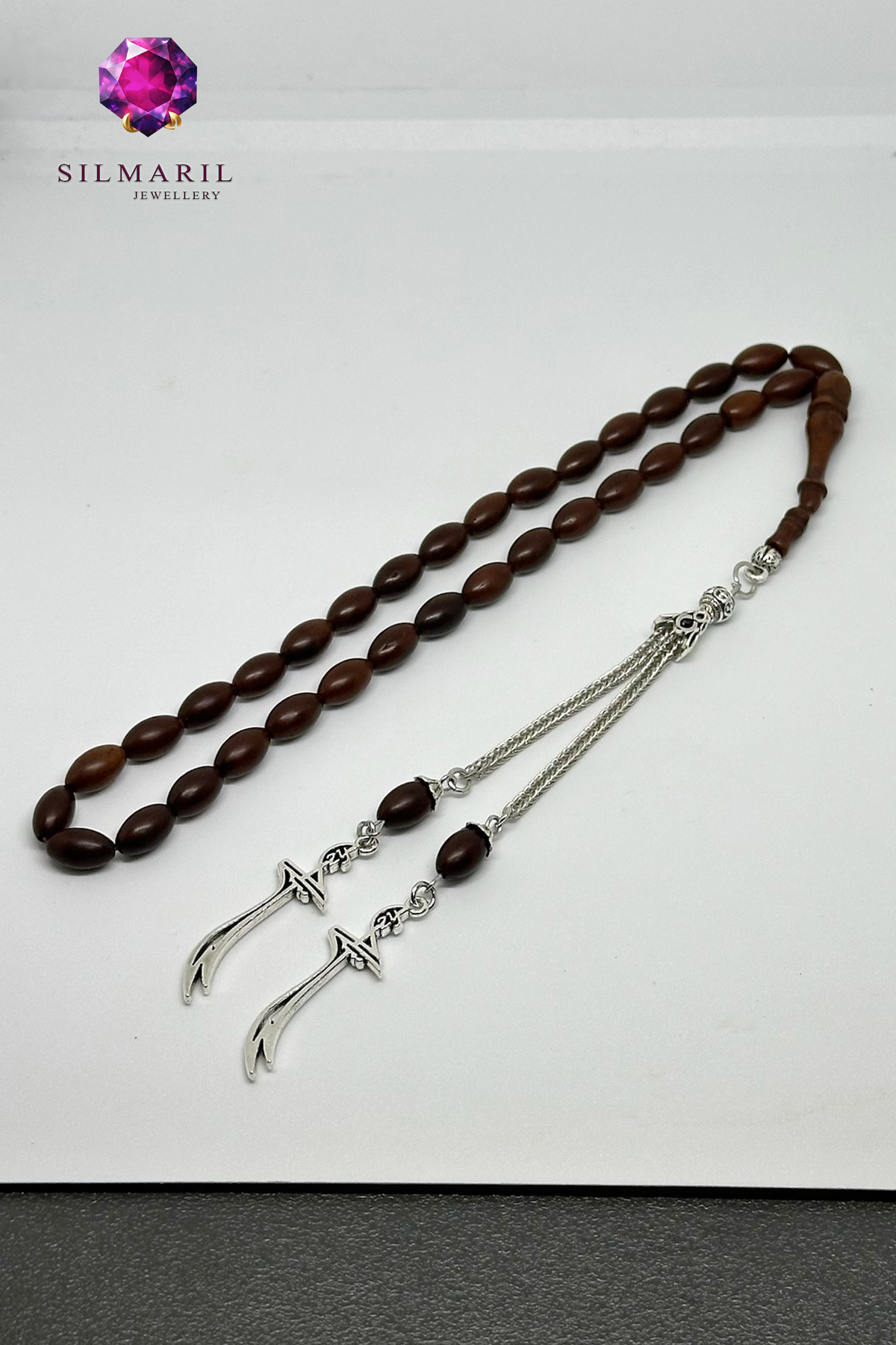 🟤 Kuka Tesbih 33’lü | Çift Sallantılı Kılıç Figürlü | Erkek Aksesuar & Hediyelik